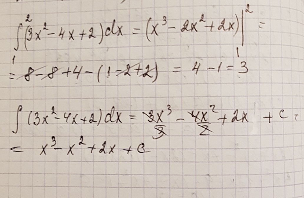 Помогите пожалуйста , вычислить hнеопределенный интеграл : 2;1(3x^2-4x+2)dx