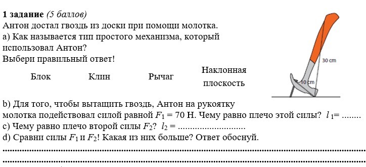 а) Антон использовал рычаг.