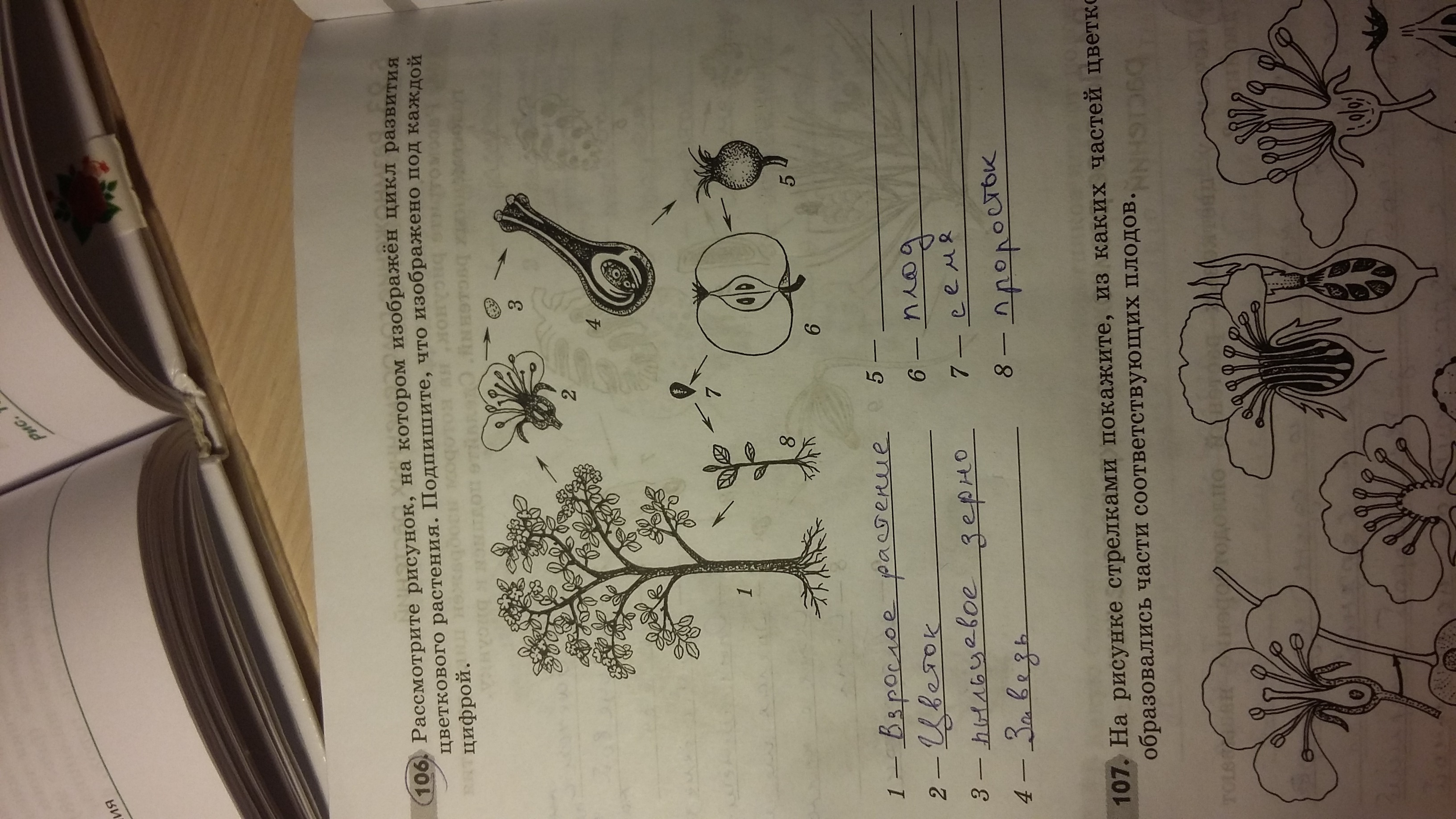 рассмотрите рисунок, на котором изображён цикл развития цветкового растения. Подпишите, что изображено под каждой цифрой. У меня возникли затруднения с цифрой 5.