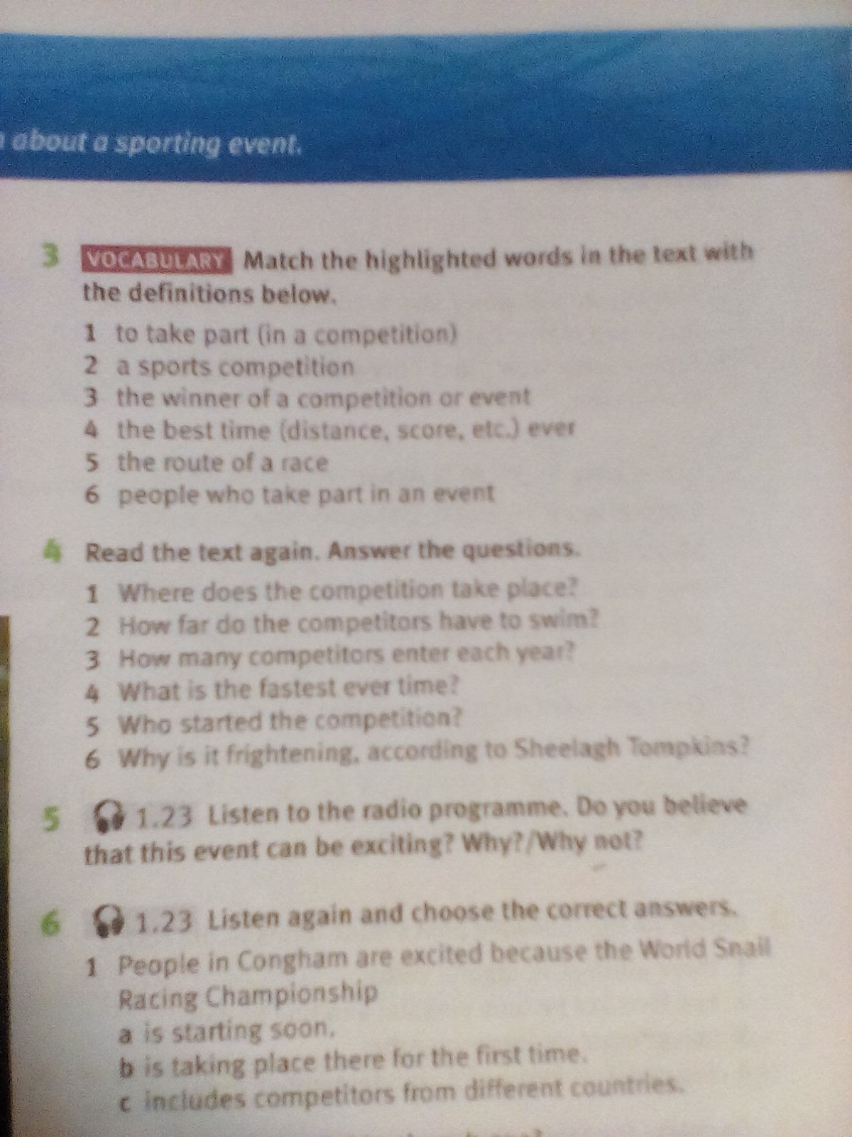 1 to compete 2 a tournament 3 a champion 4 a world record 5 a course 6 competitors