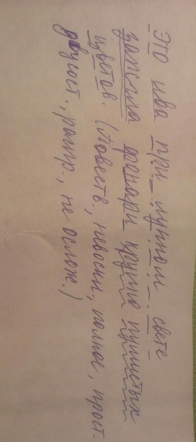 6.Эта (частица) Ива (сущ.) лунном ( прил.) свете( сущ) зажгла (гл) фонари (сущ) крупно-пушистых (прил) цветов (сущ)