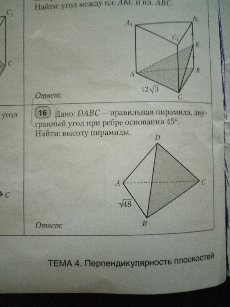 У трикутнику ABC знайдемо радіус описаного кола навколо цього трикутника. R=(a3^1/2)/2, підставляємо R=((48*3)^1/2)/2, і рахуємо.. R=12/3=4