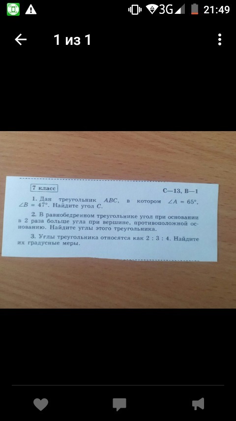 1. угол С = 180 - 65 -47= 68