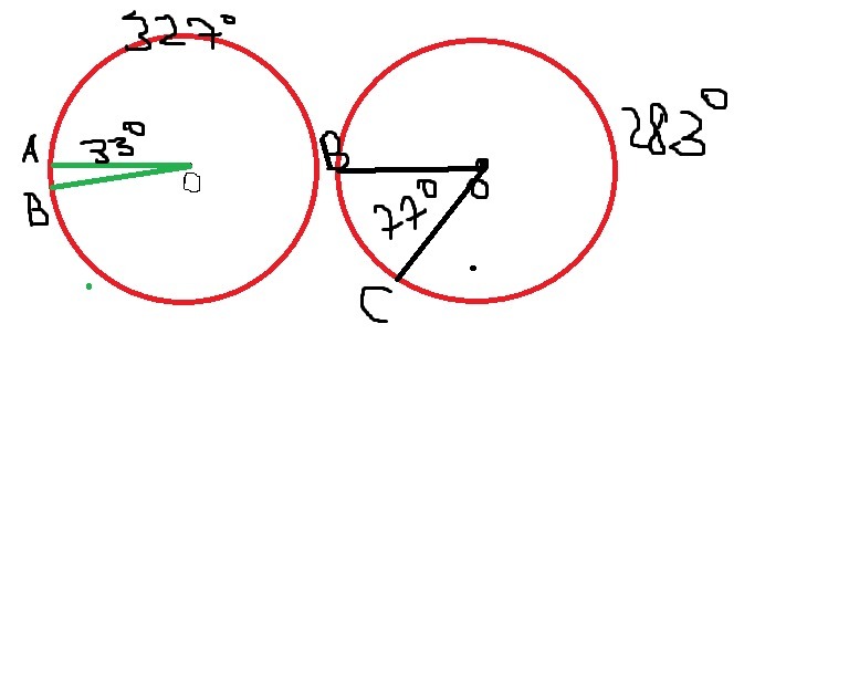 AOB = 33°, центральным углом BOC = 76°