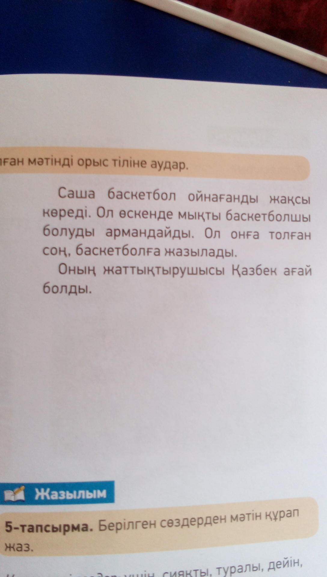 Саша любит играть баскетбол.он мечтает вырастить и стать известным баскетболистом,когда ему исполняется 10 он записывается на баскетбол.его тренер был Казбек