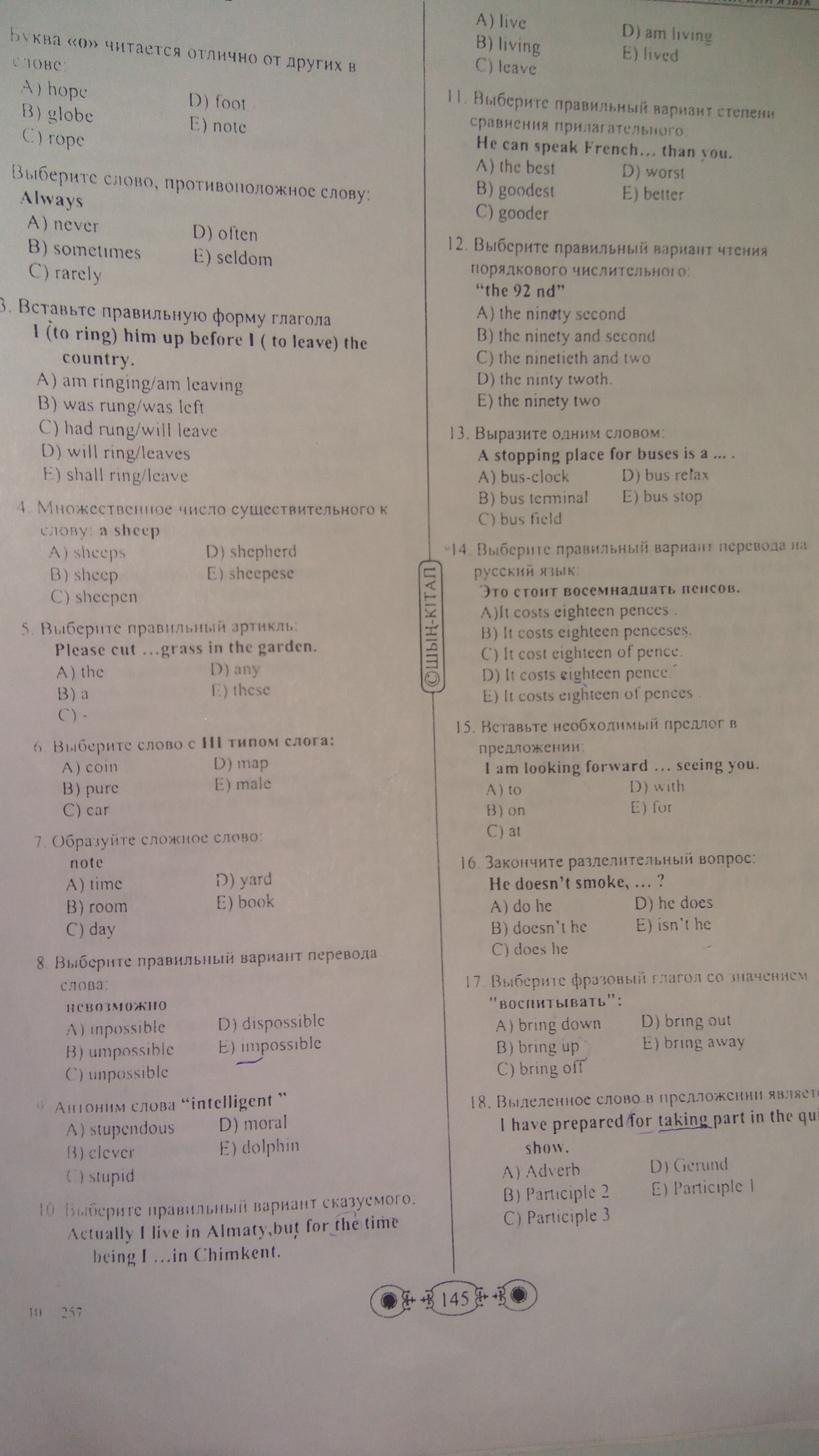 1d, 2a, 3b, 4b, 5a, 6c, 7e, 8e, 9c, 10a, 11e, 12a, 13e, 14d, 15a, 16c, 17b
