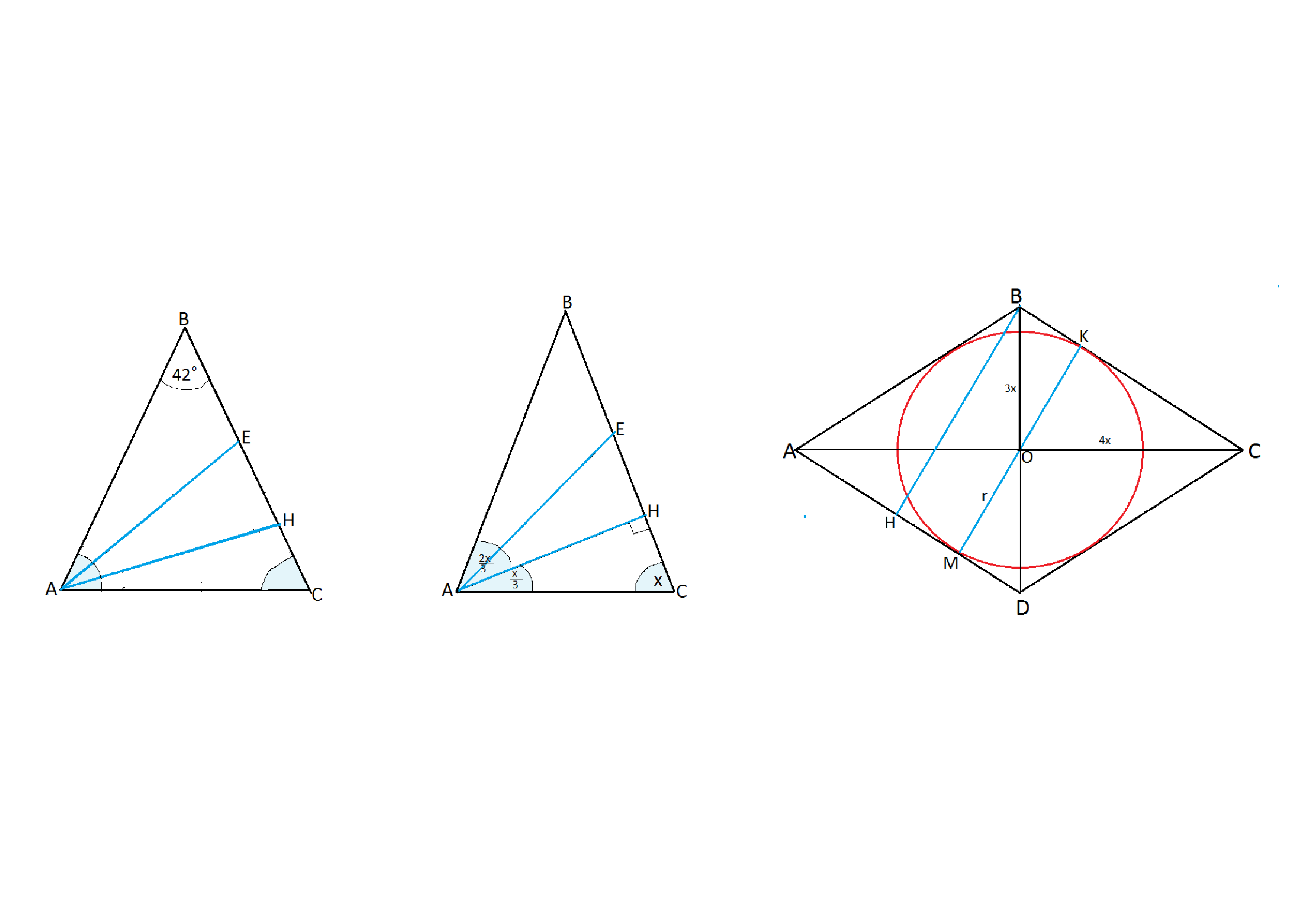 1.В равнобедренном треугольнике ABC проведены трисектрисы АЕ и АН угла А (лучи, делящие угол на 3 равные части). Найдите угол АНВ (в градусах), если ÐB = 42 .