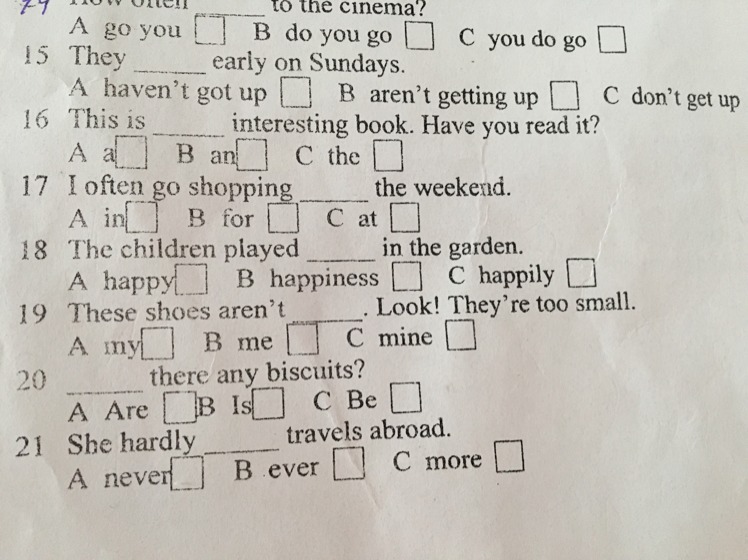 15c, 16b, 17a, 18c, 19c, 20a, 21b