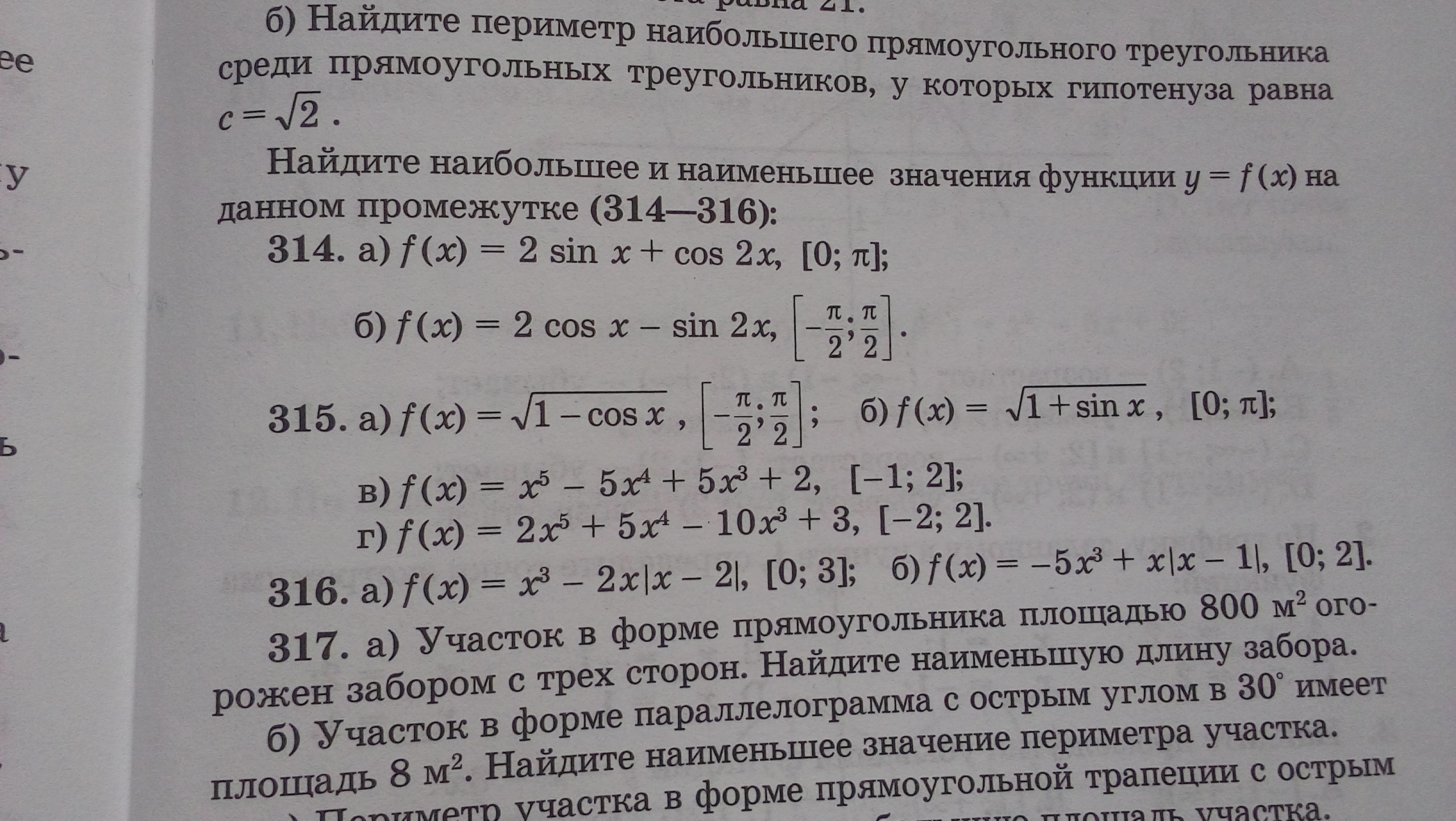 Помогите решить сложную функцию)пожалуйста.номер 314 "а" и 315 "в,г"