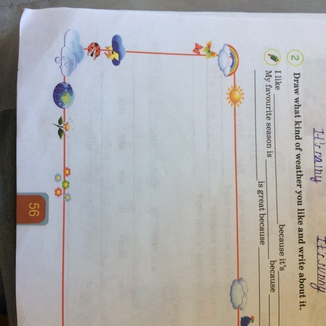 I like the sunny weather.You can do a lot of things:ride a bike,go out with friend and have fun outside.I cant stand hot weather,usually in summer i always want to drink and i cant stay much time outside because its immposible.I think the sunny weather is the best not so cold and not so hot.You dont have headache and you enjoy the weather!