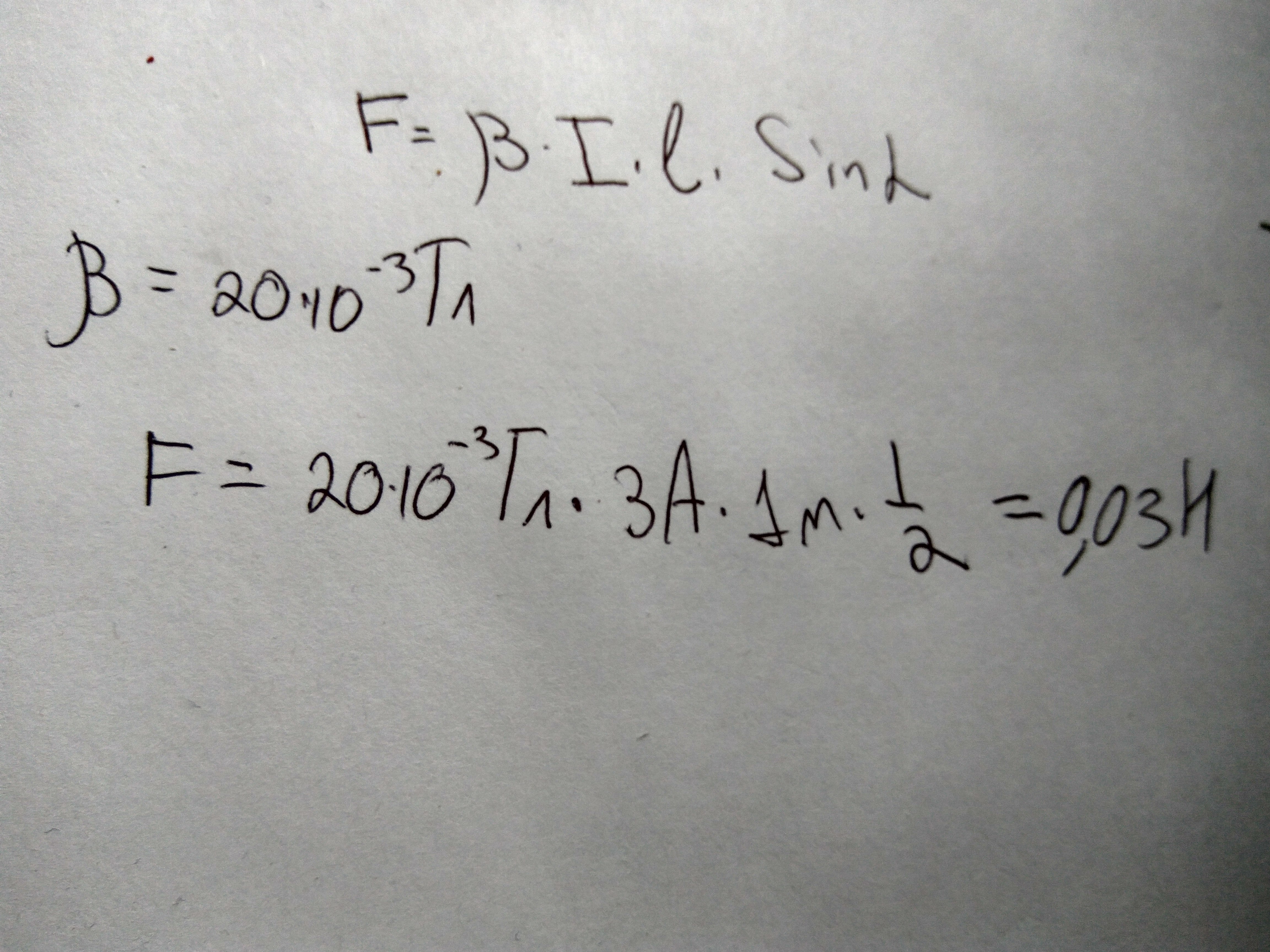 Проводник с током помещён в магнитное поле. Сила тока 3А. Индукция магнитного поля 20мТл. Угол между магнитным полем и током равен 30 градусов. Определите силу, действующую на проводник с током со стороны магнитного поля. Длина 1м.