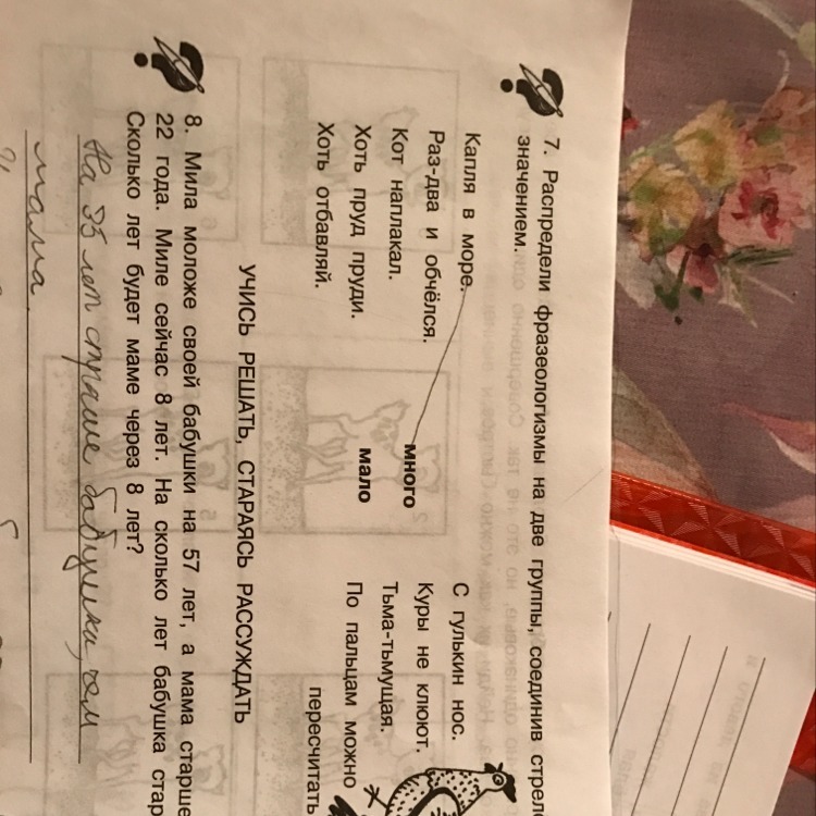 Раз-два и обчелся- мало. Кот наплакал-мало. Хоть пруд пруди- много. Хоть отбавляй-много. С гулькин нос-мало. Куры не клюют-мало. Тьма тьмущая-много. По пальцам можно пересчитать-мало