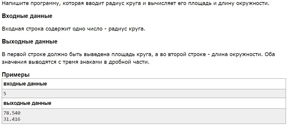 Writeln(pi*R*R:0:3,NewLine,2*pi*R:0:3)