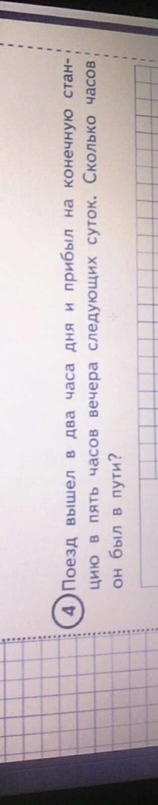 поезд вышел в два часа дня и прибыл на конечную станцыю в пять чесов вечера следуйщих суток Сколько часов он был в пути