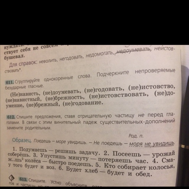 611.Ненависть-ненавистный,недоумевать-недоумение,негодовать-негодование,неистово-неистовствовать,небрежность-небрежный.