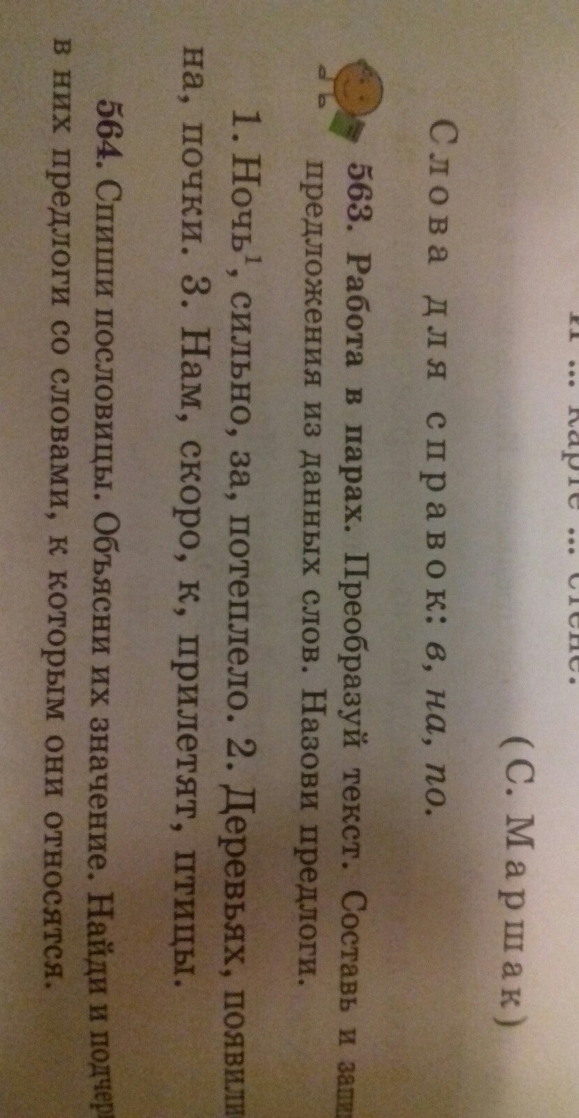 Работа в парах.Преобразуй текст .Составь и запиши предложения из данных слов Назови предлоги.