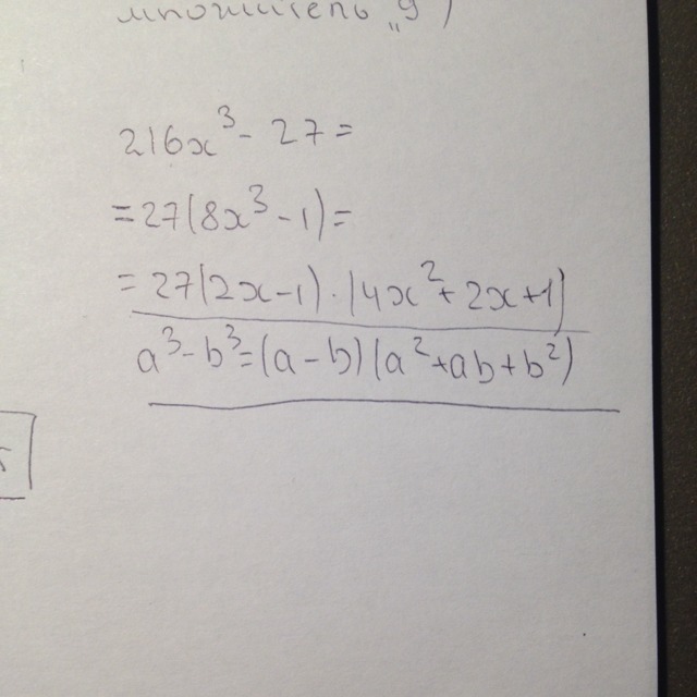 216х³-27=27(8х³-1)=27(2х-1)(4х²+2х+1).
