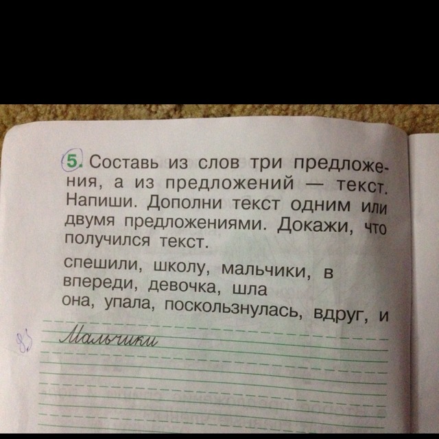 Мальчики спешили в школу. Впереди шла девочка вдруг она подскользнулась и упала.