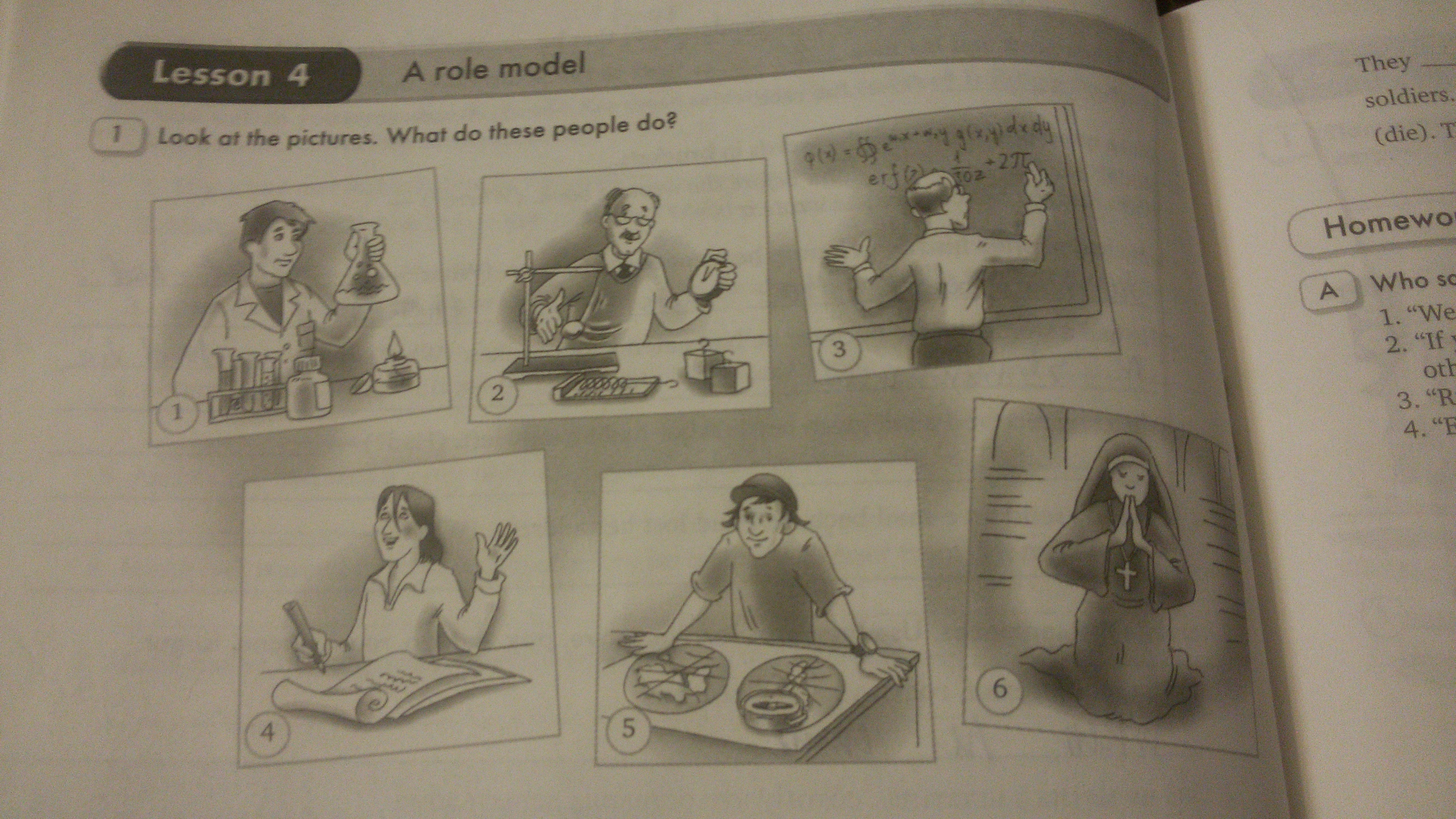 1)He is doing chemistry.