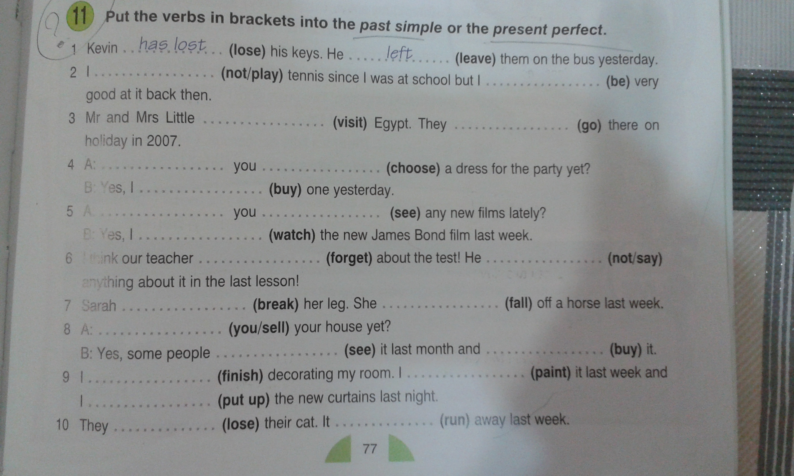 1. had lost. 2 had not. was .3 Vizited ,went/ 4/ больше не могу на писать так как спешу . извини
