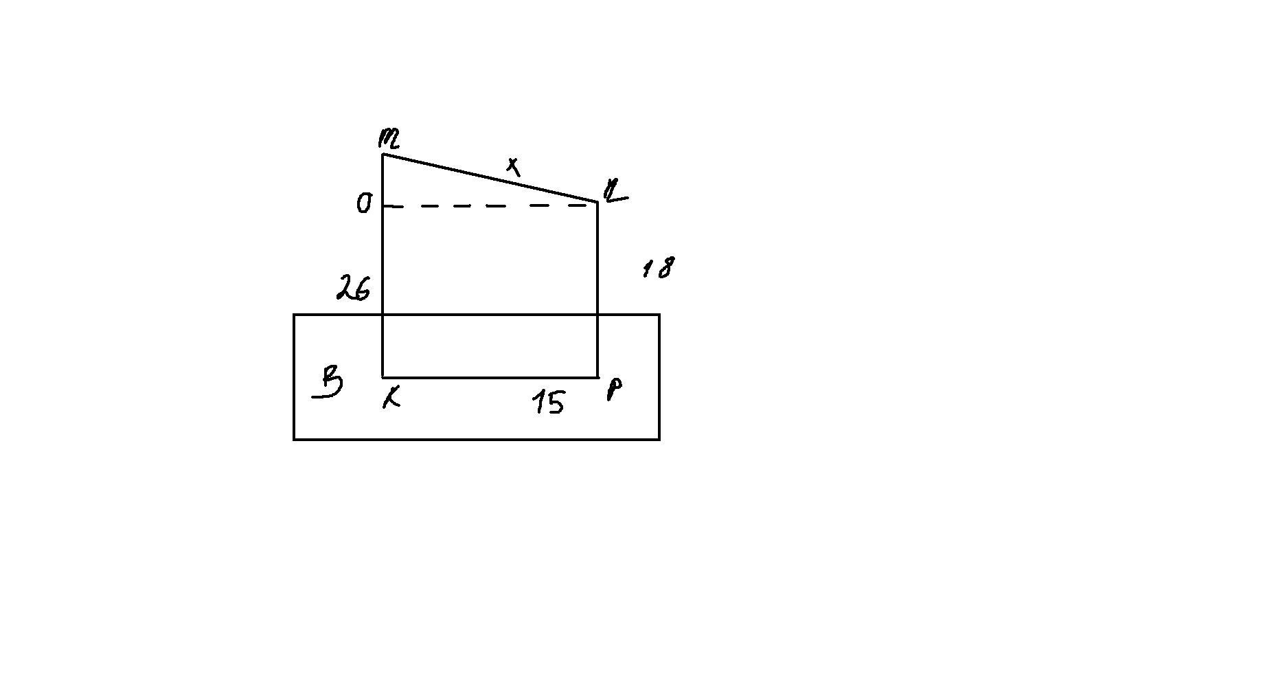 Смотри внизу! там все видно значит обозначим точку где уровень n равен точки и назовем ее O , тогда OM=26-18=8 . mn=V8^2+15^2=17