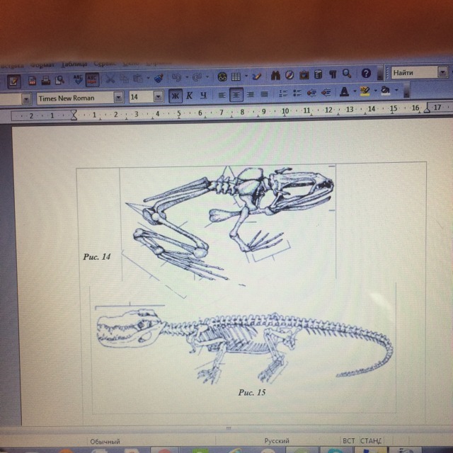 Какие отделы имеются в скелетах животных, изображённых на рисунках 14-15? В чем их основные различия?
