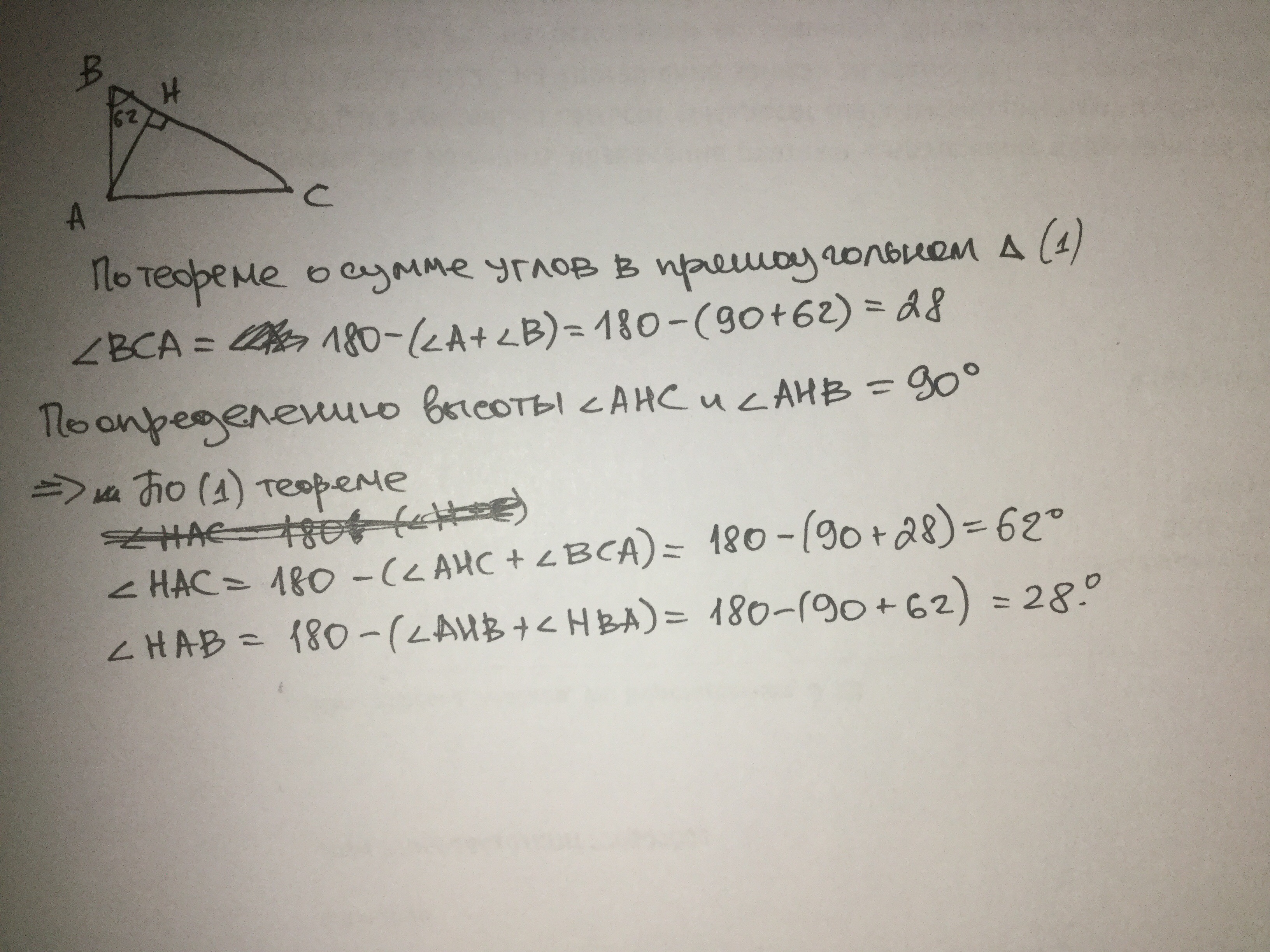 Какие углы эта высота образует с катетами, если больший из острых углов этого треугольника равен 62°?