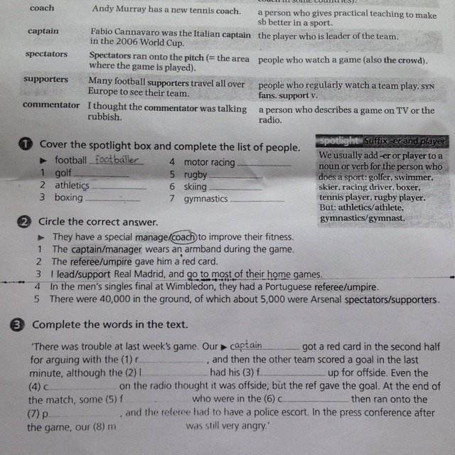 2) 1-captain, 2- referee, 3-support, 4-umpire, 5-supporters.