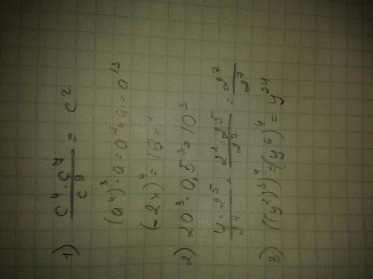 Упростите выражения с^4*c^7:c^9= (a^4)^3*a= (-2x)^4 Вычислите используя свойства степени 20^3*0,5^3= 4*2^5 и с низу дробь 2^7 Представьте в виде степени с основанием у ((у^2)^3)^4