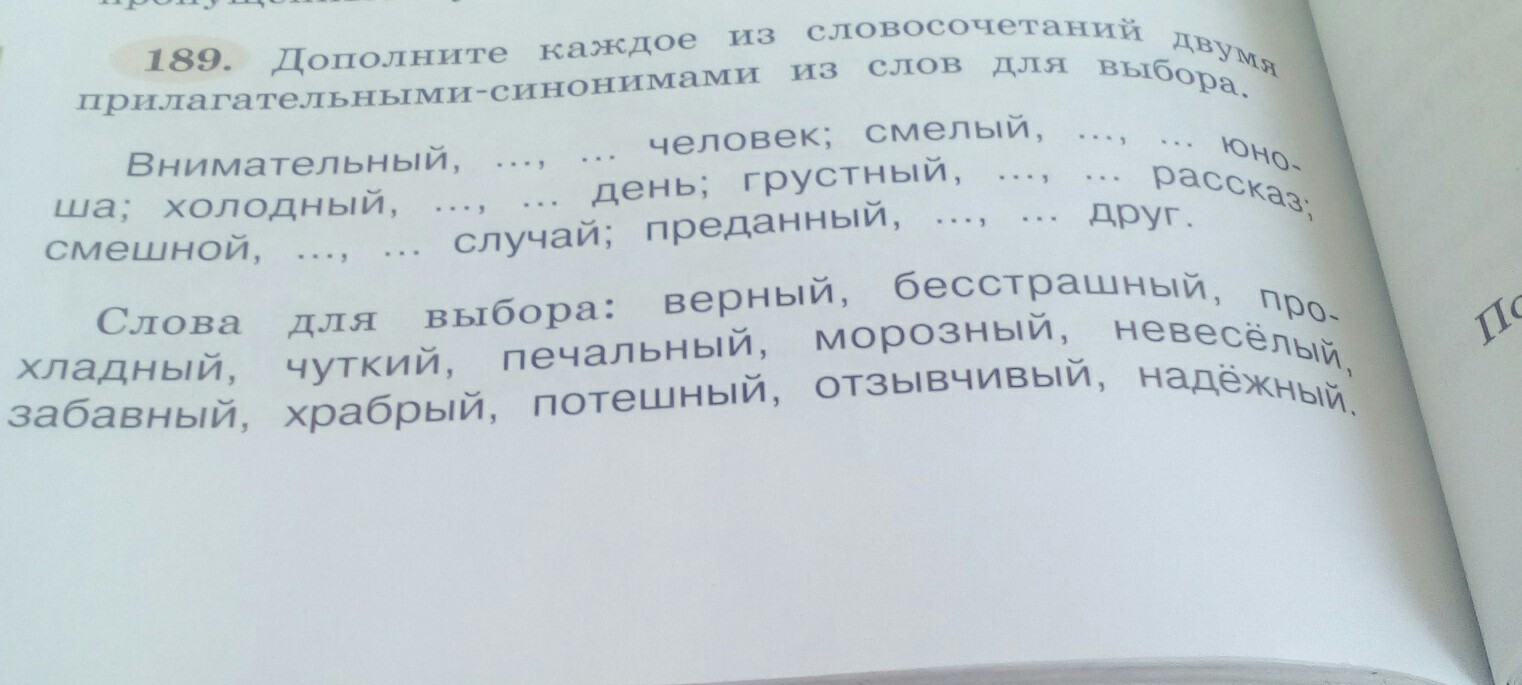 Внимательный - чуткий , отзывчивый. Смелый-храбрый бестрашный юноша. Холодный прохладный морозный день.Грустный - печальный ,невеселый рассказ. Смешной - забавный потешный случай.Преданный - надежный,верный.