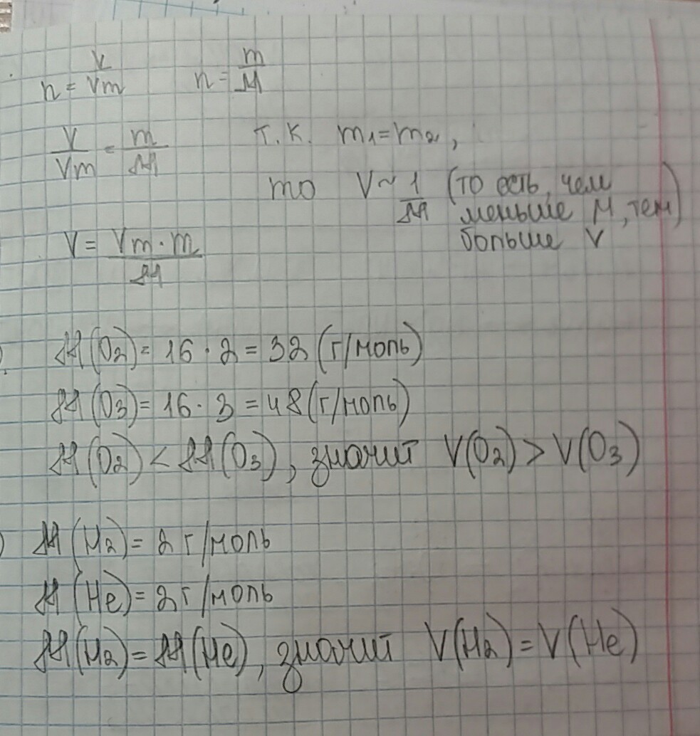 Решите задачи. Приведите расчёты. Какой газ при одинаковых условиях займёт больший объём: