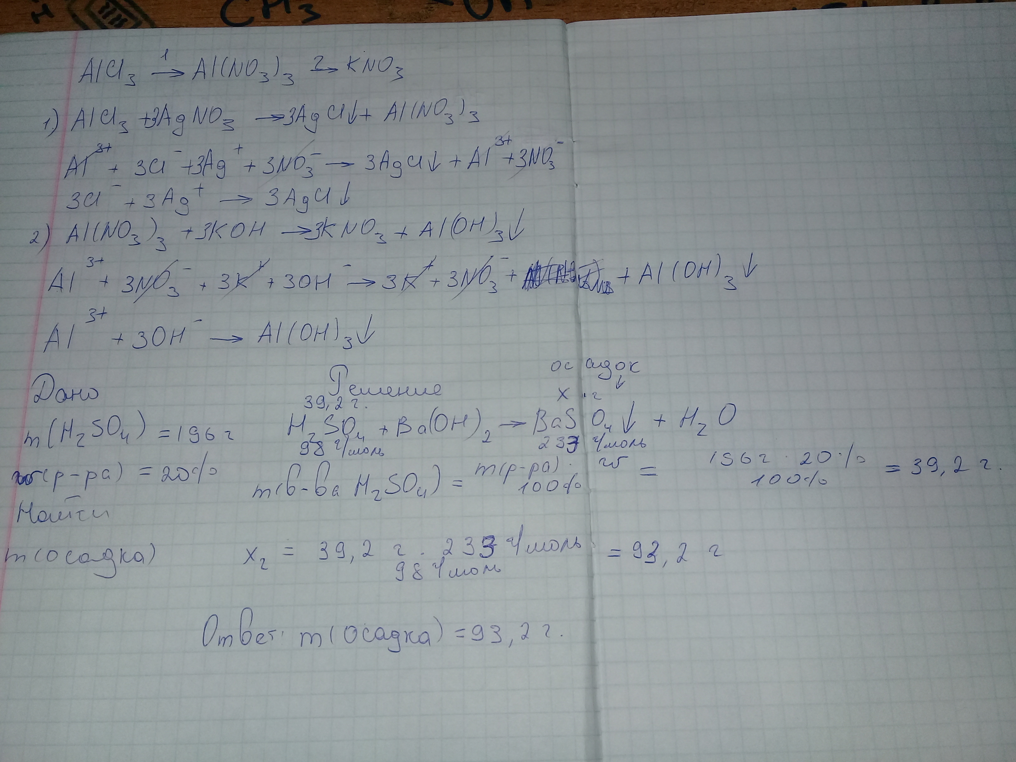 1. Осуществить цепочку превращений :AlCl3->All(NO3)3->KNO3. Запишите молекулярные, полные ионные и сокращение ионные уравнения реакций.