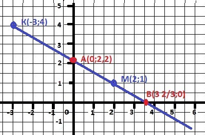 4. На координатной плоскости через точки K(–3;4) и M(2;1) проведите прямую. Запишите координаты точек, в которых эта прямая пересекает координатные оси. Помогите плиз