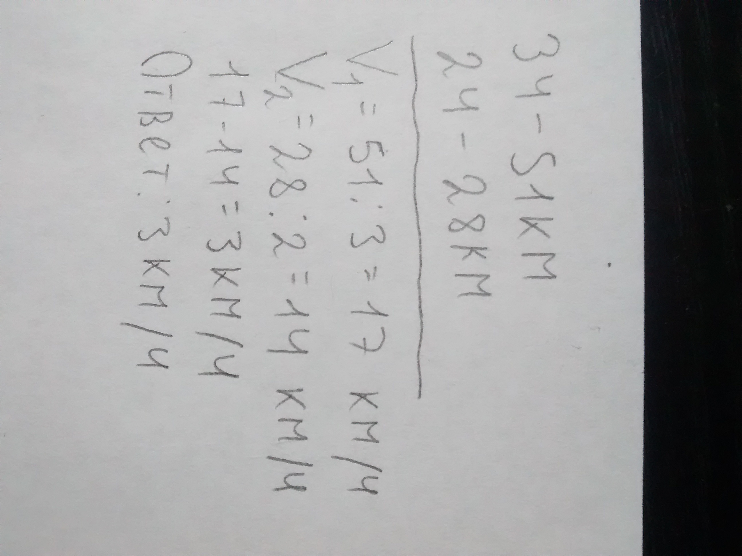 За 3ч лыжник пробежал 51 км,а за заследующие 2ч он пробежал 28 км.На сколько километров в час изменилась его скорость?