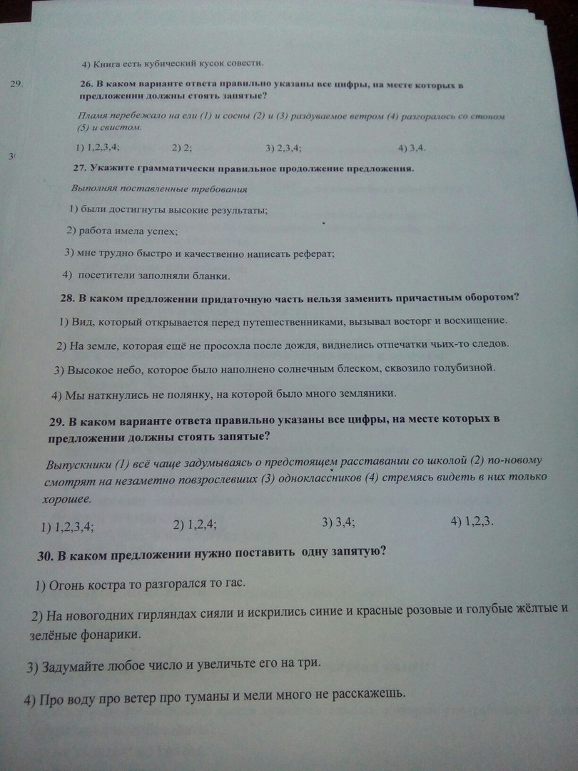 20. 3) 21. 4) 22. 4) 23. 1) 24. 1) 25. 4) 26. 4) 27. 4) 28. 4) 29. 2) 30. 1)