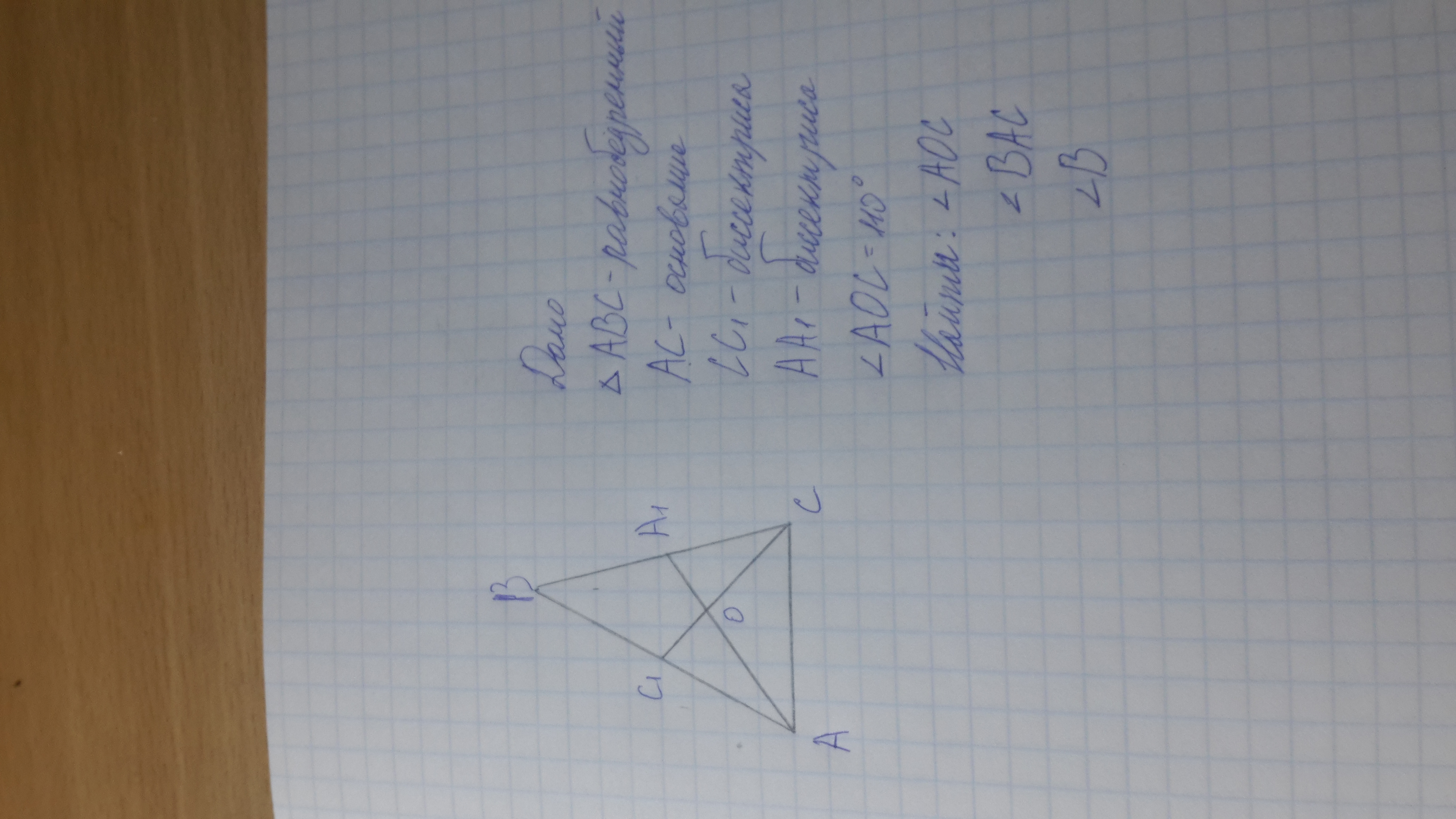 угол А=ОАС×2=35×2=70°. А=С=70°