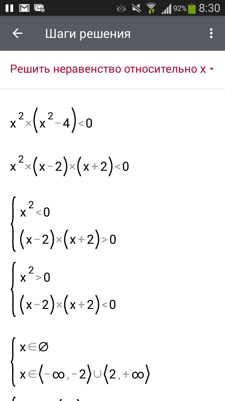 Вот решение . А ответ в конце (-2; 0) v (0; 2)