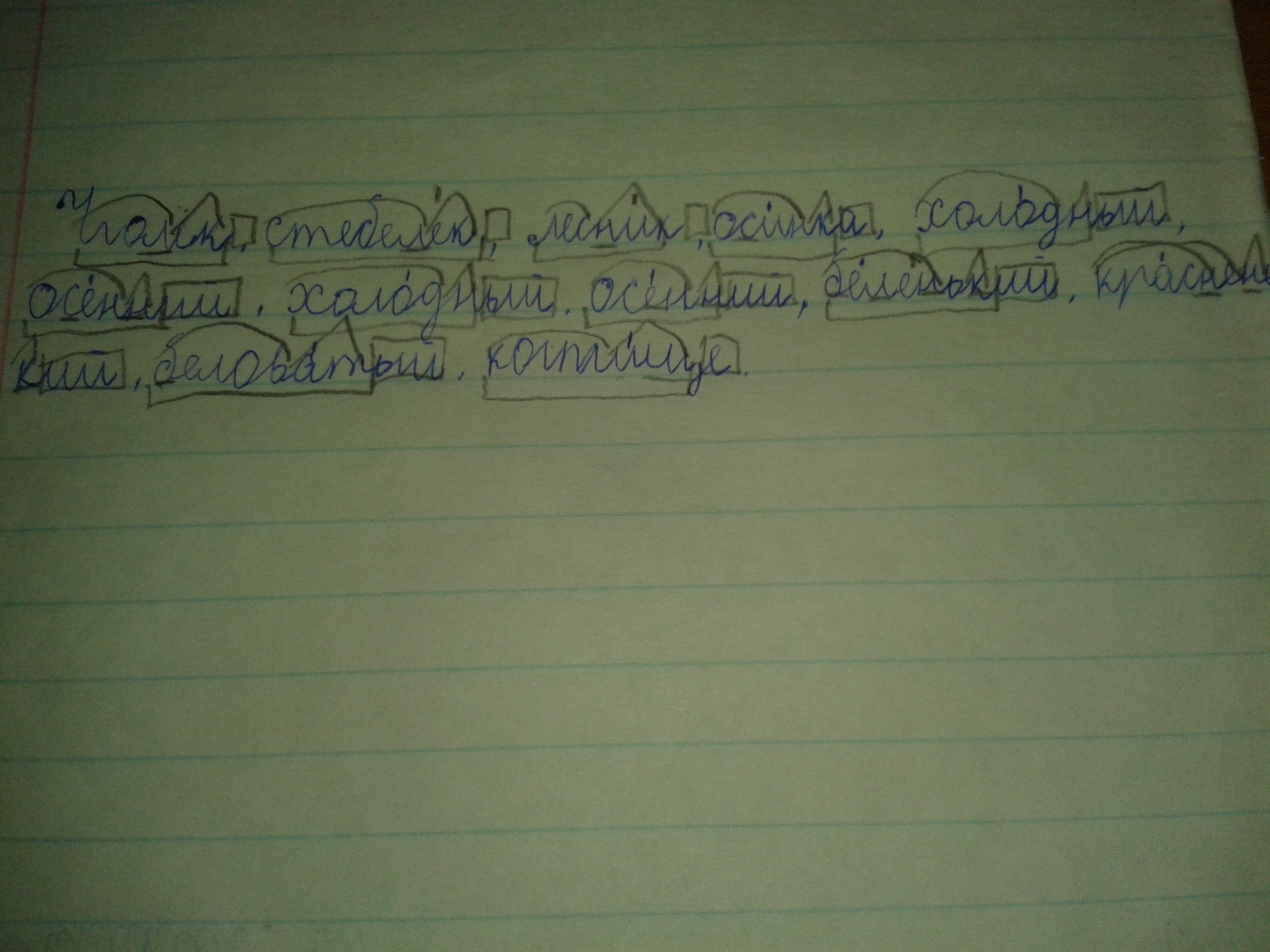 Разбери слова по составу. Поставь знак ударения. Подчеркни мягкие согласные. Уголек, стебелек, лесник,осинка,холодный,осенний,беленький,красненький,беловатый,когтище.