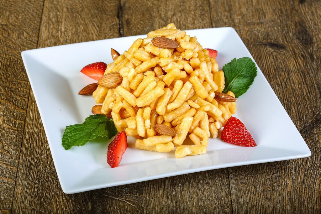 Брусочки из мягкого теста, обжаренные в масле и склеенные медом.