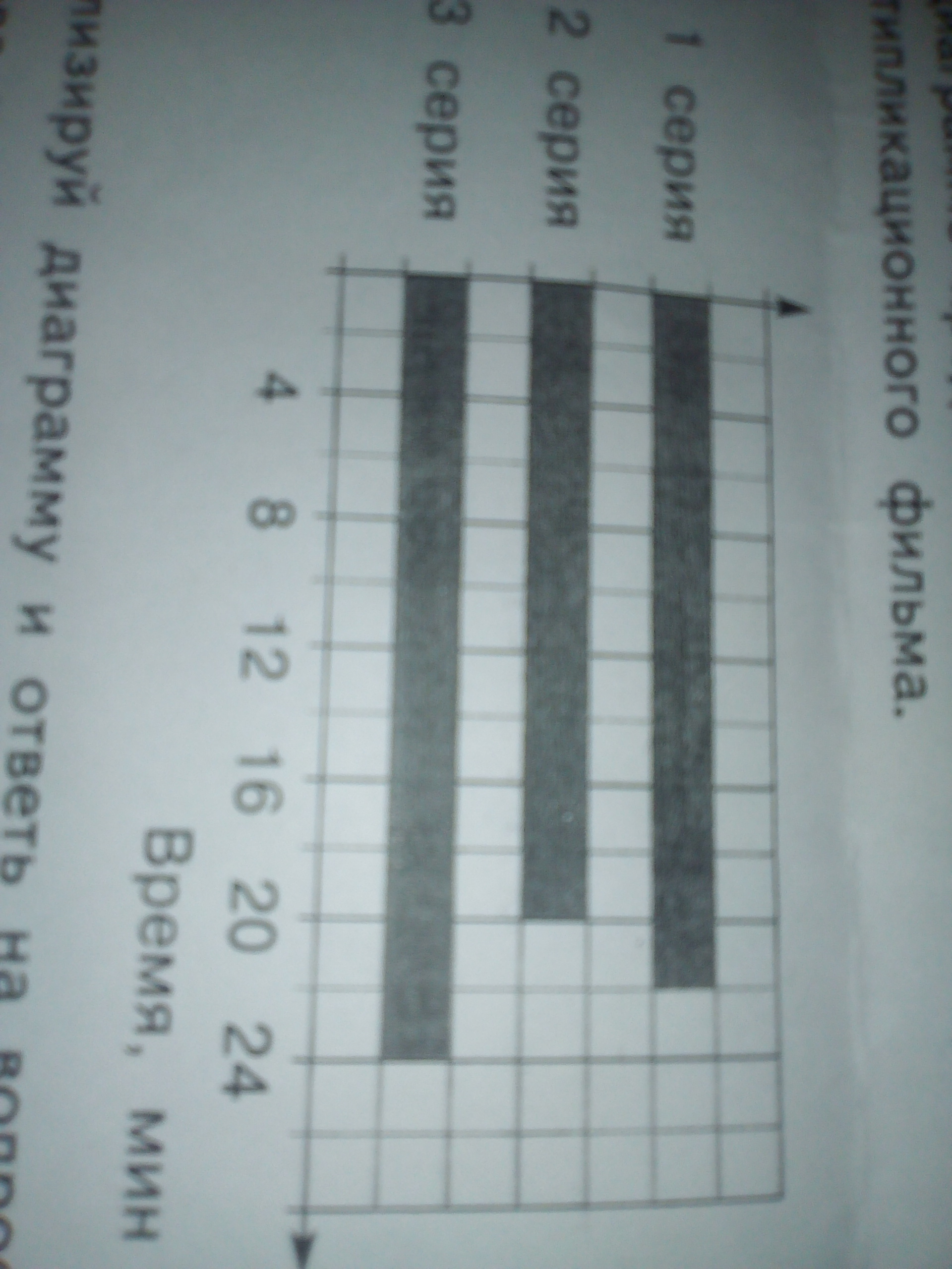 На Диаграмме представлена продолжительность трех серий мультипликационного фильма