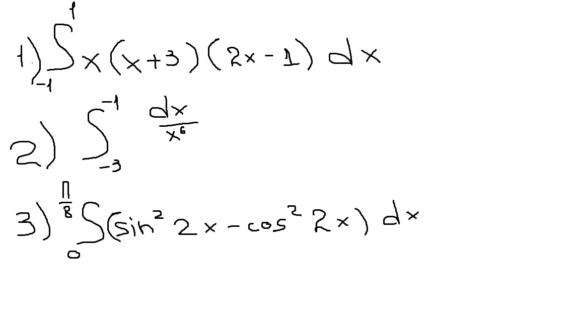 1); ; int limits ^1_{-1}x(x+3)(2x-1), dx=int limits _{-1}^1(x^2+3x)(2x-1)dx=\\=int limits _{-1}^1(2x^3+5x^2-3x)dx=(2cdot frac{x^4}{4}+5cdot frac{x^3}{3}-3cdot frac{x^2}{2})Bg |_{-1}^1=\\=( frac{x^4}{2} + frac{5x^3}{3}-frac{3x^2}{2} )Big |_{-1}^1=( frac{1}{2} +frac{5}{3}- frac{3}{2} )-( frac{1}{2}- frac{5}{3} -frac{3}{2} )=frac{10}{3}
