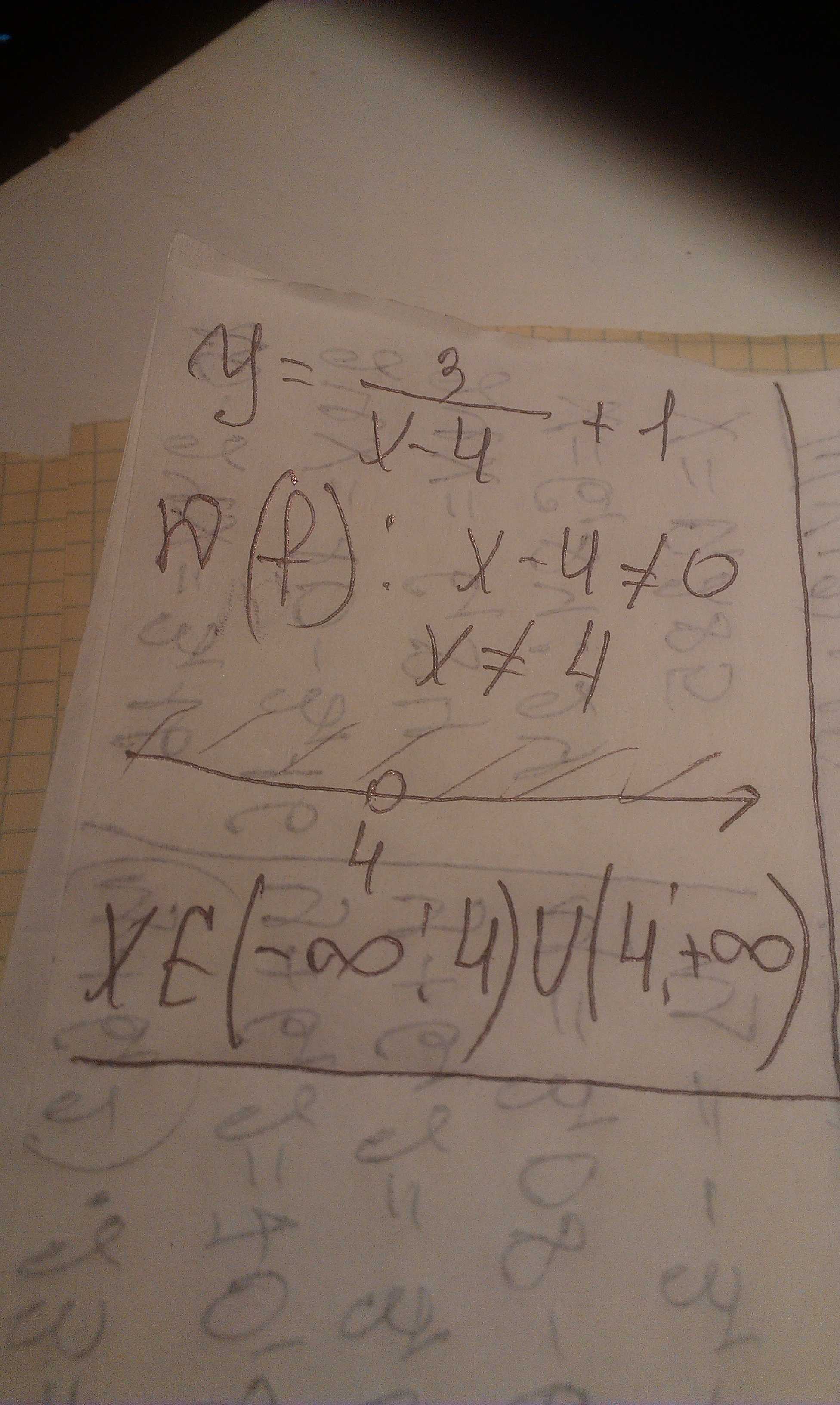 Область определения D(f)= (-бесконечности до 4) (4до + бесконечности)