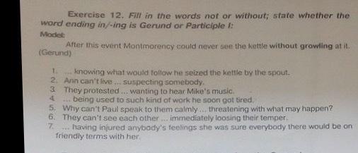 1 not knowing Part 2 without suspecting Ger 3 not Part 4 not Part 5 without Ger 6 without Ger 7 not Part