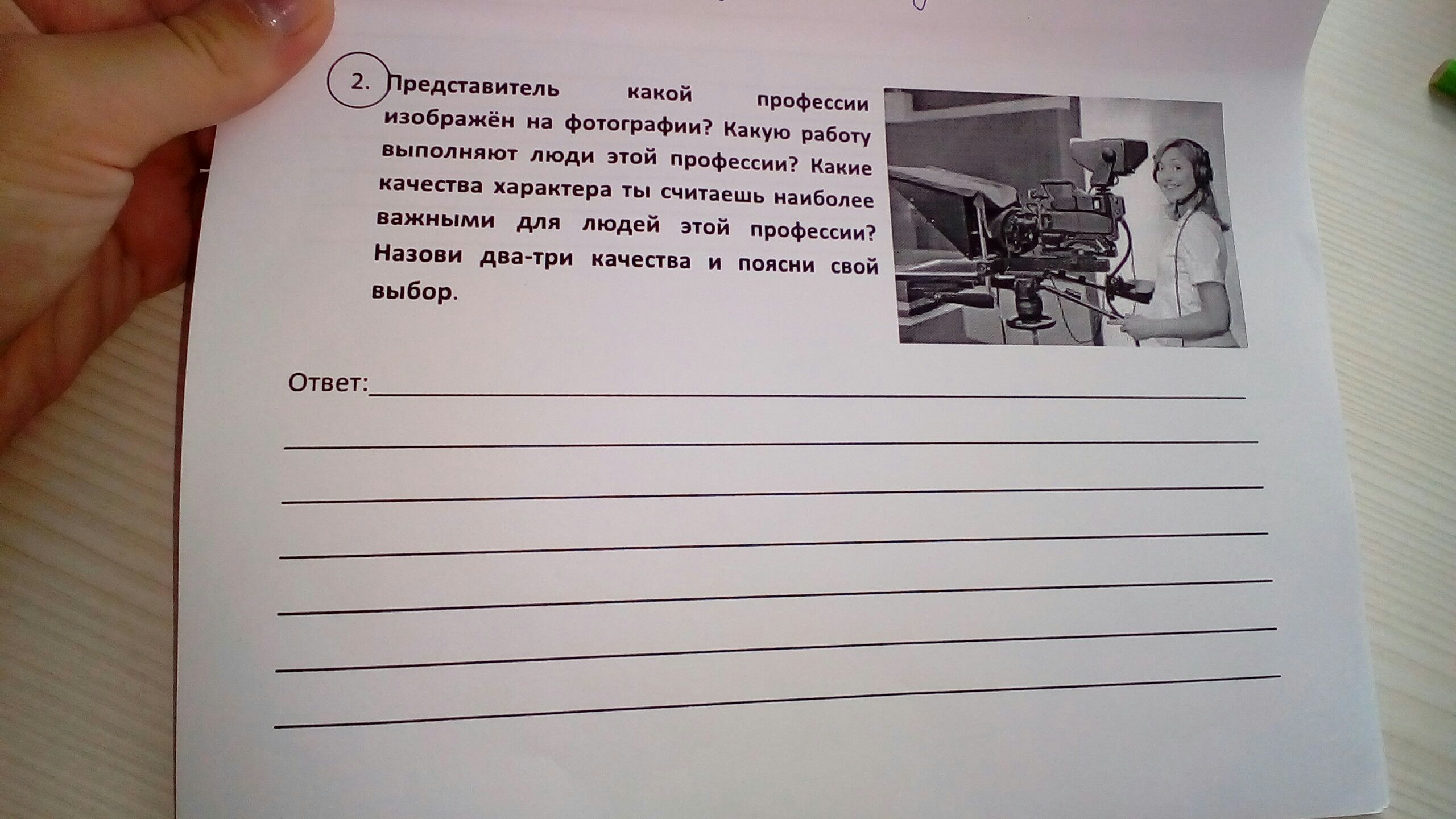 На данной фотографии изображен оператор. Представители этой профессии снимают кинофильмы, сериалы, и т.д. Я думаю, что операторы должны иметь терпение, силу воли и целеустремленность. Терпение он должен иметь так как не всегда у людей которые снимаются в чем-либо получается всё с первого раза, целеустремленность- для того чтобы сделать то, что хочешь не смотря ни на что.