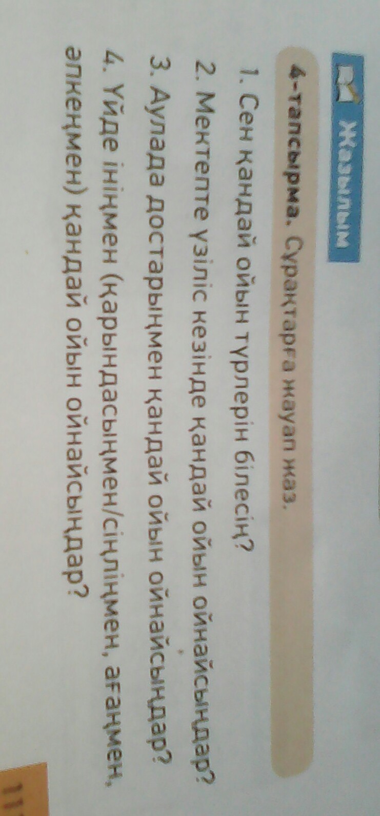 1 Какие ты игры знаешь? 2 В школе на перемена в какие игры играете вы?3 Дома сестрой братиком или подругами на какой игры вы играете? ,