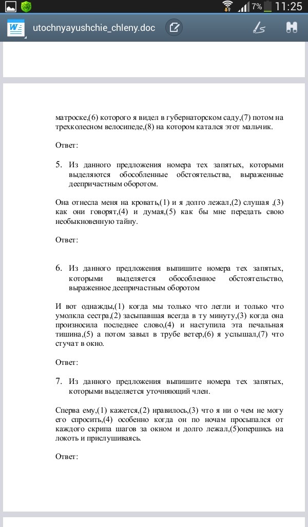 7. 5 (обособленное обстоятельство, выраженное деепричастным оборотом).