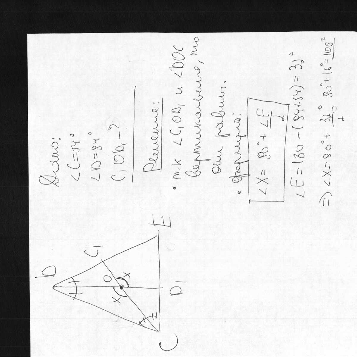 о - точка пересечения биссектрис углов С и Д в треугольнике СДЕ. Угол С=54 градуса, угол Д=94 градуса. Найдите угол С1ОД1