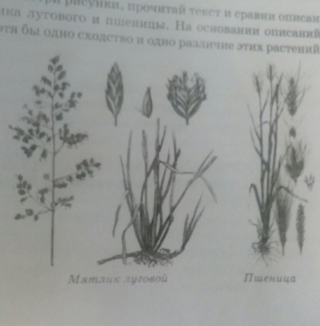 Рассмотрим рисунок почитай текст и сравни описания мятлик лугового и пшеницы. На основании описаний укажем хотя бы одно сходство и одно различие этих растений.