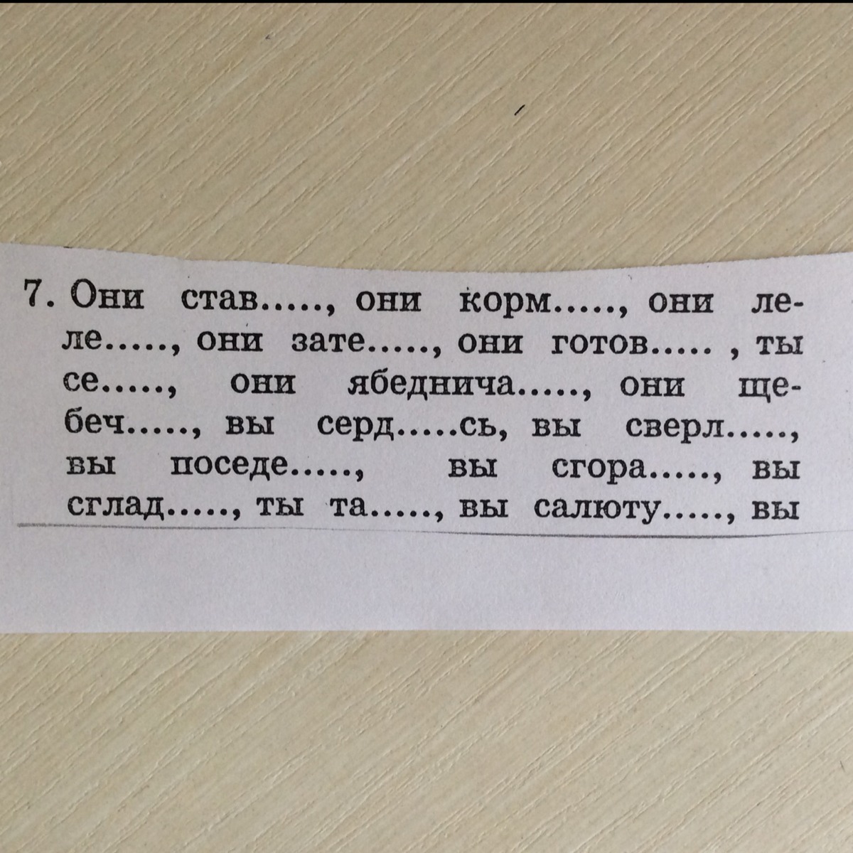 Они ставят,они кормят,они лелеют,они затеят,они готовят,они ябедничают,они щебечут,вы сердитесь,вы сверлите,вы посеедите,вы сгорают,вы сглаживание,0ты