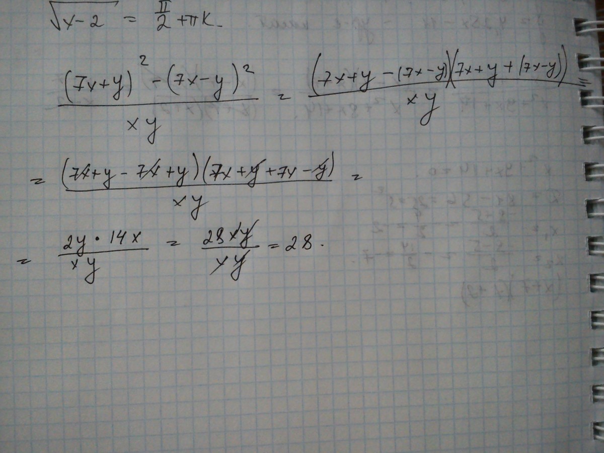 ...=(49x^2+14xy+y^2-49x^2+14xy-y^2)/(xy)=28xy)/(xy)=28